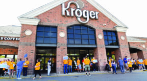 After the second contract rejection, Kroger added 15 cents an hour to the wage package, but it wasn’t enough to pass the agreement. Some workers have been calling for a $5 an hour raise, using Kroger’s own slogan, “Strive for five” – encouraging cashiers to place at least five items in each plastic bag.